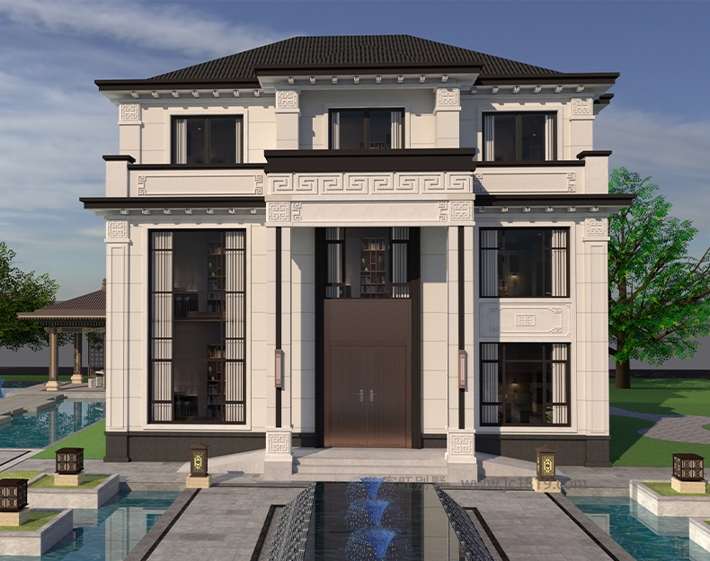 14×18.18米 三層新中式別墅 挑空門廳 占地面積188.979平方 編號(hào):202401072121