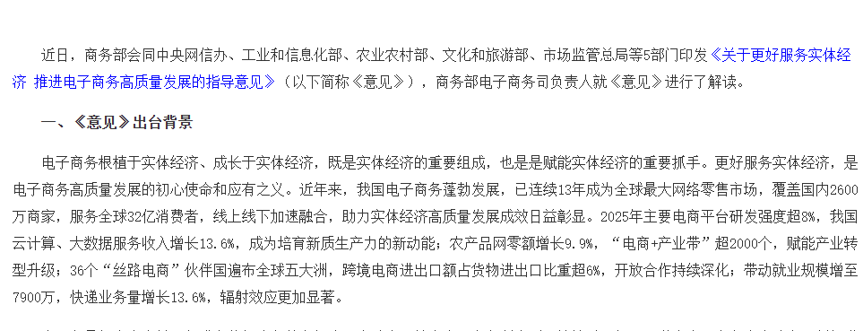 解讀《關(guān)于更好服務(wù)實(shí)體經(jīng)濟(jì) 推進(jìn)電子商務(wù)高質(zhì)量發(fā)展的指導(dǎo)意見