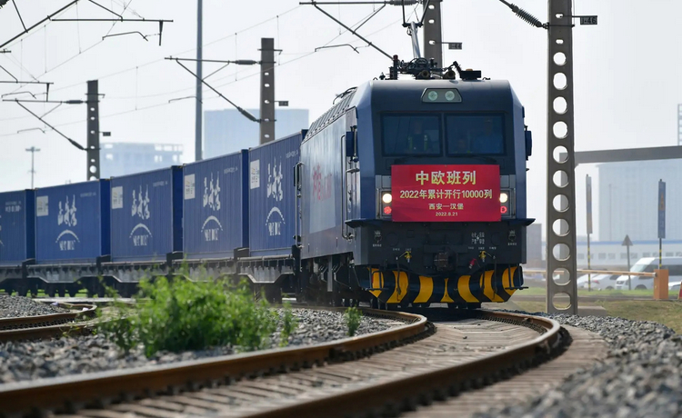 2022年8月21日,隨著中歐班列(西安—漢堡)從西安國(guó)際港站開出,今年以來中歐班列累計(jì)開行達(dá)10000列,較去年提前10天破萬列;今年累計(jì)發(fā)送貨物97.2萬標(biāo)箱,同比增長(zhǎng)5%,綜合重箱率達(dá)98.4%。