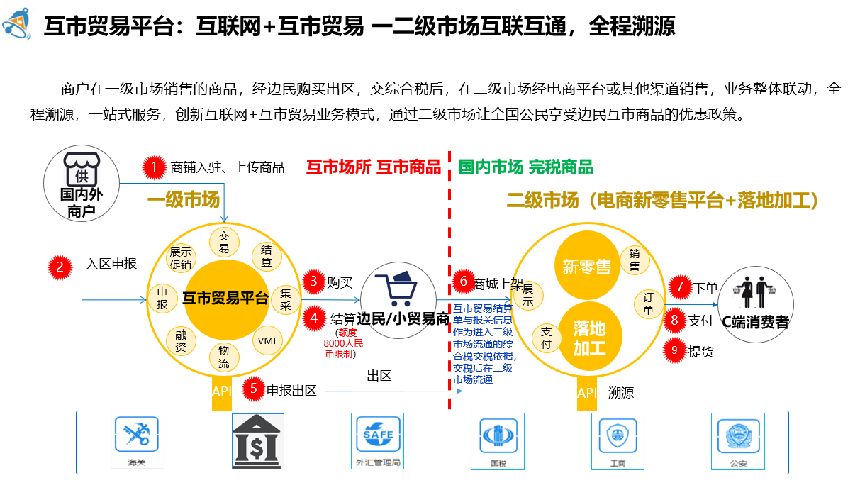 值得一提的是,關(guān)于邊民互市貿(mào)易平臺(tái)的搭建,也可使用4PNT四方網(wǎng)絡(luò)邊民互市貿(mào)易平臺(tái)系統(tǒng)實(shí)現(xiàn)互聯(lián)網(wǎng)+邊民互市貿(mào)易創(chuàng)新模式,實(shí)現(xiàn)一二級(jí)市場(chǎng)聯(lián)動(dòng),通過云倉管理系統(tǒng)規(guī)范貿(mào)易監(jiān)管,結(jié)合新零售和電商平臺(tái)擴(kuò)大商品銷售渠道,并完善跨境結(jié)算體系以及通過數(shù)據(jù)集采實(shí)現(xiàn)商品全程可溯源等功能,可提供互市貿(mào)易交易、海關(guān)監(jiān)管和物流服務(wù),建立一個(gè)互市貿(mào)易與通關(guān)一體化“窗口式”服務(wù)系統(tǒng)。