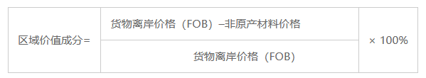 第六條 本辦法第三條第一款第(三)項規(guī)定的區(qū)域價值成分應(yīng)當(dāng)按照下列公式計算: