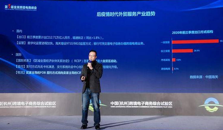 2020年11月24日在“潮起錢塘·數(shù)字絲路”第五屆全球跨境電商峰會上,阿里巴巴國際站跨境供應(yīng)鏈總經(jīng)理王添天回顧了2020年中國出口跨境貿(mào)易大賽道中兩個核心變化:第一,監(jiān)管層面;第二,業(yè)務(wù)需求,基于客戶本身在業(yè)務(wù)需求面對以后我們要為他們提供價值的變化。