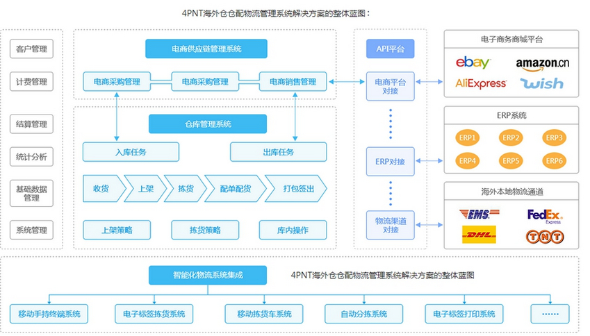 如果海外倉(cāng)服務(wù)商自己公司沒有開發(fā)海外倉(cāng)管理系統(tǒng),可以選擇第三方海外倉(cāng)管理系統(tǒng),比如4PNT四方網(wǎng)絡(luò)的海外倉(cāng)倉(cāng)配管理系統(tǒng)是專門為海外倉(cāng)的倉(cāng)儲(chǔ)與配送物流運(yùn)營(yíng)管理提供的全面信息化解決方案,可以幫助各種業(yè)務(wù)模式的海外倉(cāng)經(jīng)營(yíng)者實(shí)現(xiàn)高效而精細(xì)化的物流運(yùn)營(yíng)管理,并實(shí)現(xiàn)與電子商務(wù)平臺(tái)與海外本地物流服務(wù)渠道之間信息的互聯(lián)互通。