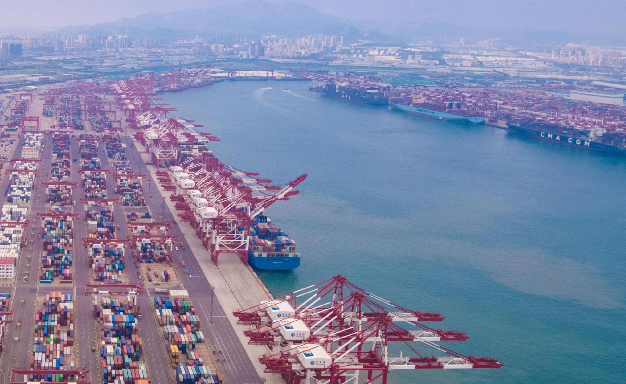 不遠(yuǎn)處,青島港前灣集裝箱碼頭公司副總經(jīng)理張軍正與同事研究如何進(jìn)一步提高船舶作業(yè)效率!皟H今天一天,我們公司在港作業(yè)的集裝箱船舶就有21條!睆堒姼嬖V記者,上半年,前灣集裝箱碼頭公司共開(kāi)辟15條新航線,其中聯(lián)通區(qū)域全面經(jīng)濟(jì)伙伴關(guān)系協(xié)定(RCEP)及“一帶一路”沿線國(guó)家和地區(qū)的航線有10條。