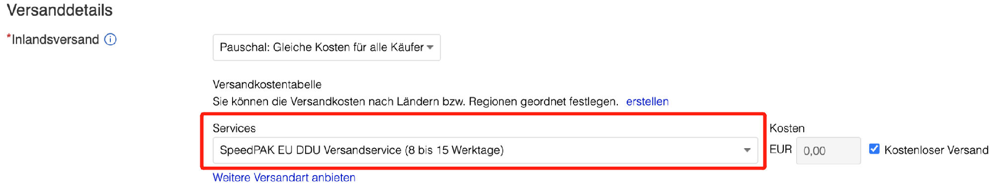 德國(guó)網(wǎng)站SpeedPAK EU DDU物流選項(xiàng):