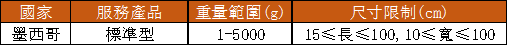 ● 派送范圍:墨西哥全境 (Villa de Guadalupe, Villa de Reyes, SantaMara del Ro, Misantla等地區(qū)的部分郵編除外)