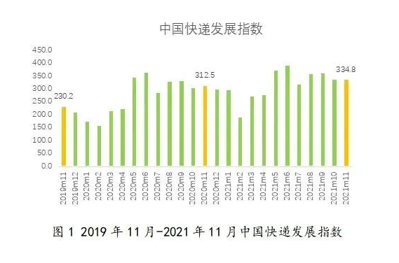11月,中國快遞發(fā)展規(guī)模指數(shù)為420.2,同比增長12.1%。值得一提的是,2021年1月至11月,全國快遞業(yè)務(wù)量已超900億件。12月上旬,快遞業(yè)務(wù)量直破千億件。