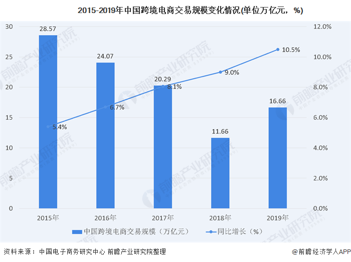 隨著我國(guó)電子商務(wù)和對(duì)外貿(mào)易的發(fā)展,按照可比口徑來(lái)看,2015-2019年國(guó)內(nèi)跨境電商交易規(guī)模不斷擴(kuò)大,2019年達(dá)到16.66萬(wàn)億元,同比增長(zhǎng)10.5%,近幾年國(guó)內(nèi)跨境電商行業(yè)發(fā)展迅猛。由于復(fù)雜多變的國(guó)際形勢(shì)和國(guó)家的經(jīng)濟(jì)高速發(fā)展,跨境電商物流面臨著多種因素的挑戰(zhàn),同時(shí)隨著相關(guān)政策法規(guī)的落實(shí)、服務(wù)質(zhì)量需求提高和技術(shù)水平的逐步提升,跨境電商物流逐步向著規(guī)范化、專業(yè)化、數(shù)字化的趨勢(shì)邁進(jìn)。